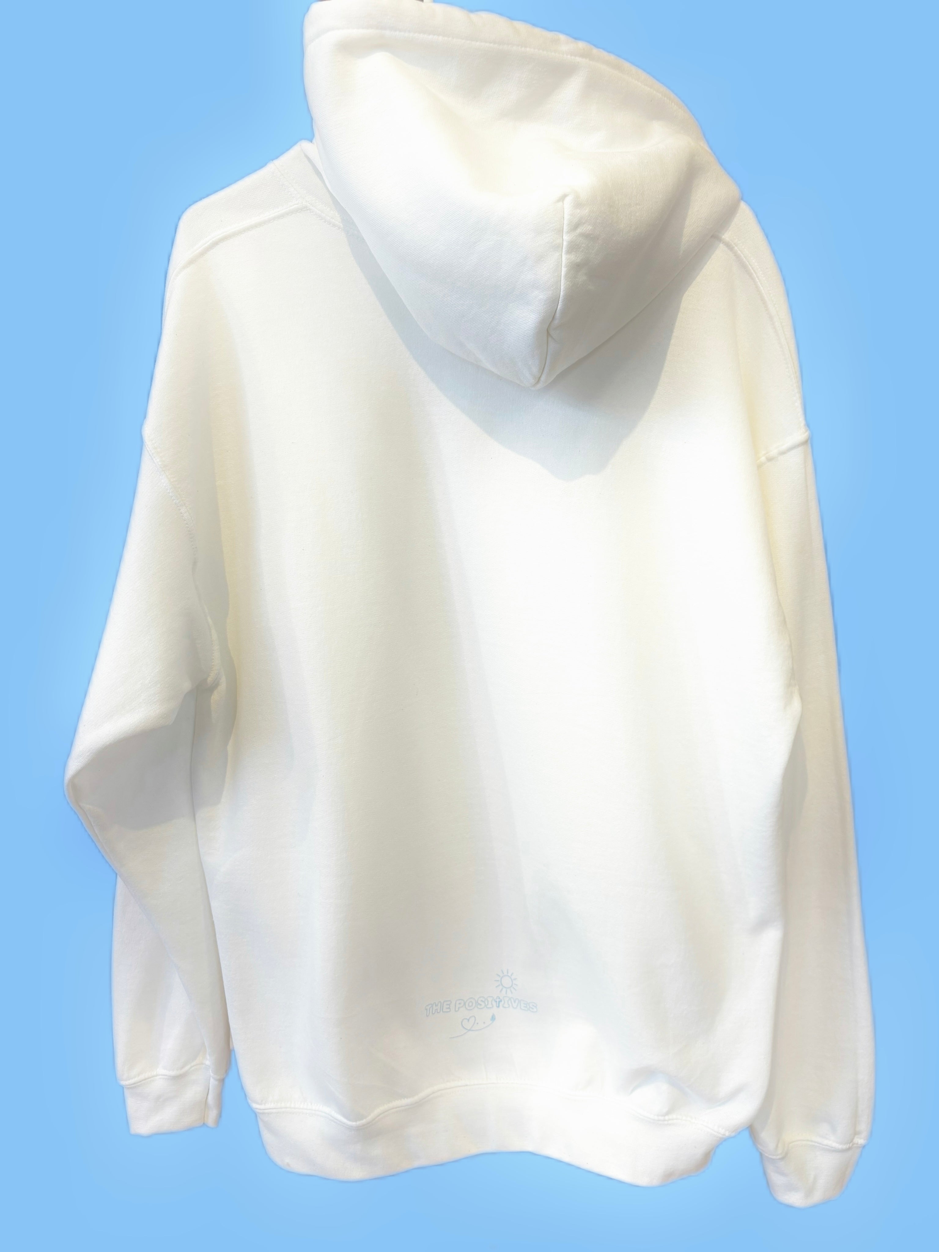 Aim High hoodie - white with blue design