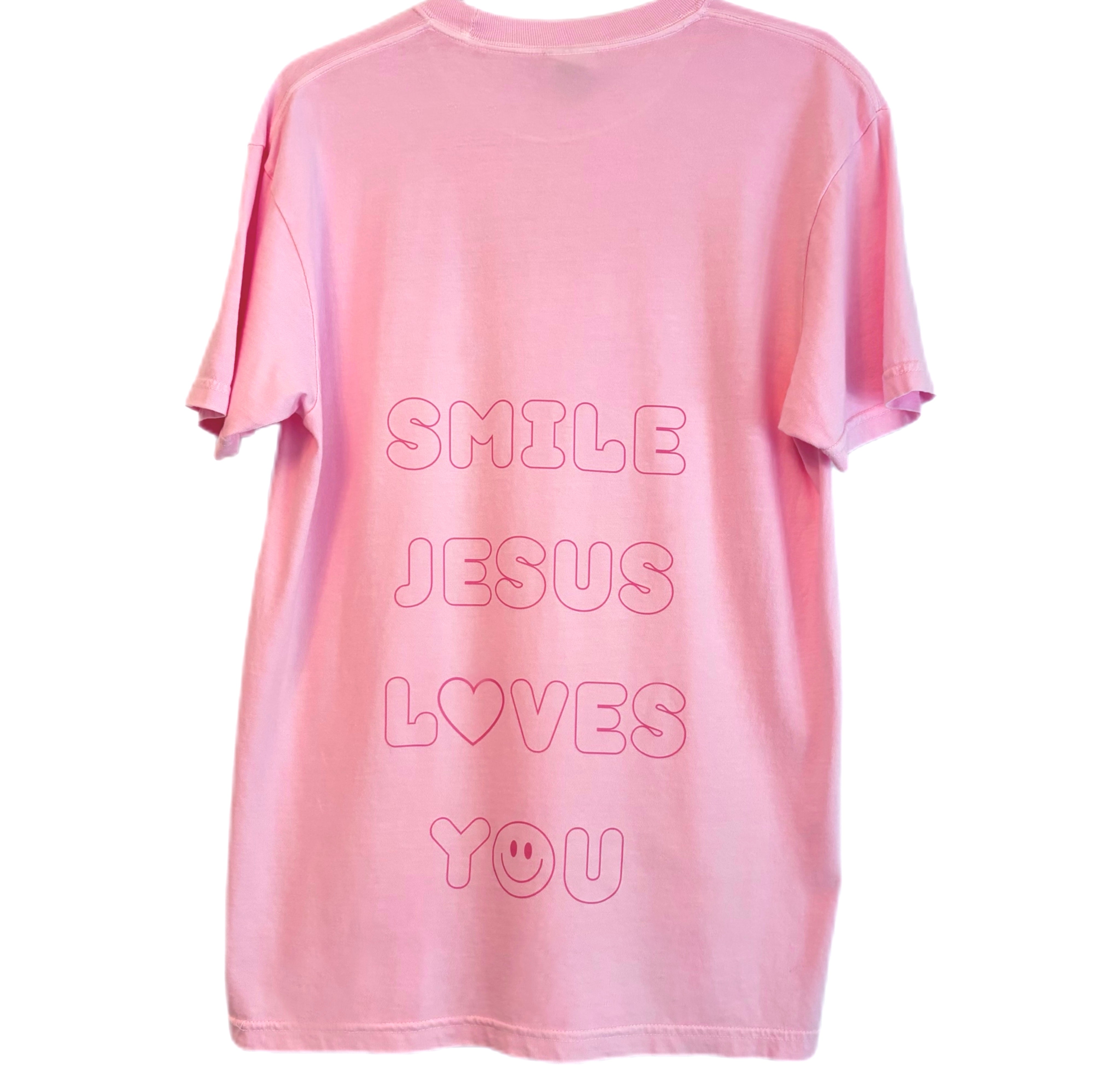 Smile because you are loved beyond measure! Jesus loves unconditionally, and no matter what challenges you face, His love is a reason to shine brightly. It encourages us to show empathy and kindness. Let's spread joy, knowing we are deeply loved! Wear this product as a reminder to have faith and trust in God; worry and anxiety do not add to your life. Joy and positivity are rooted in faith, and this message can provide comfort and assurance. It encourages kindness and compassion, reminding others to smile and spread love. Something as simple as smiling at a stranger can create a positive ripple effect! In a world where negativity and challenges abound, this message stands as a beacon of hope and faith, reminding everyone of the love and grace found in Jesus.